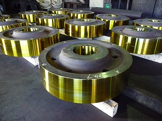 横旋盤で加工される大型旋盤加工品としては、シャフト形状からディスク形状の製品まで幅広く対応できます。ただし、横旋盤の場合もワークの大きさには制限があるため、どちらの加工機を選択するかは製品仕様を十分に検討した上で判断する必要があります。