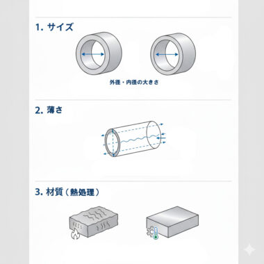 - 材質(熱処理) – 使用する材料と熱処理の有無
